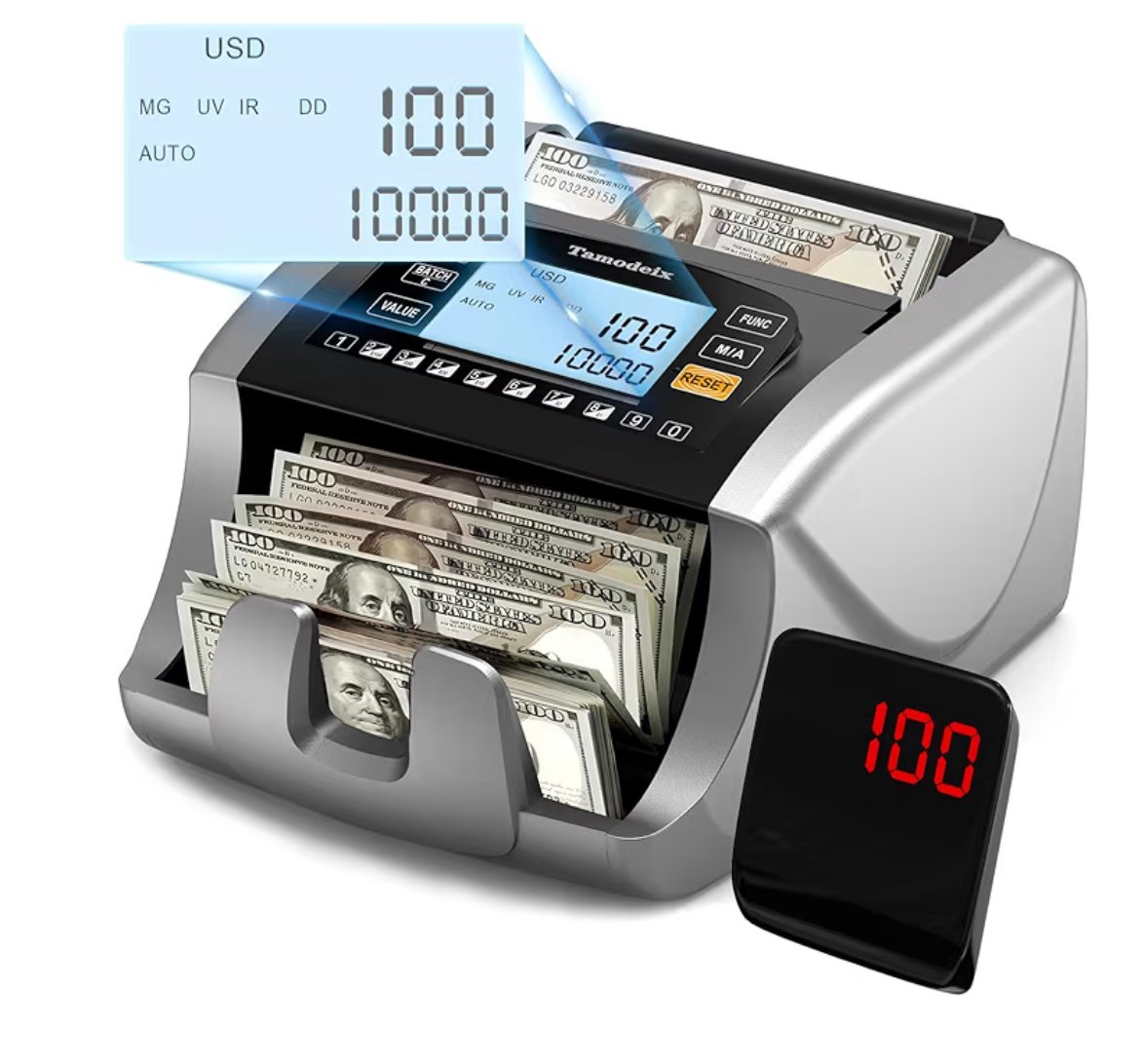 Máquina Contadora de Dinero Dólar, Euro, MXN (Billetes de Plástico) Contador de Billetes (No Puede Contar Denominaciones Mixtas), Detección de Falsificaciones UV/MG/IR/DD/DBL/HLF/CHN Contador